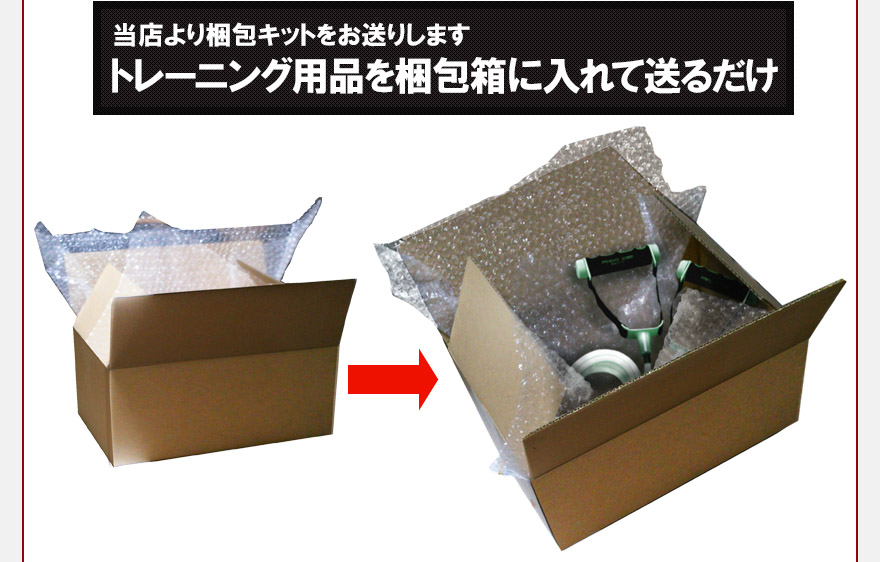梱包箱にトレーニング用品を入れて当店に送っていただいて終わりになります。